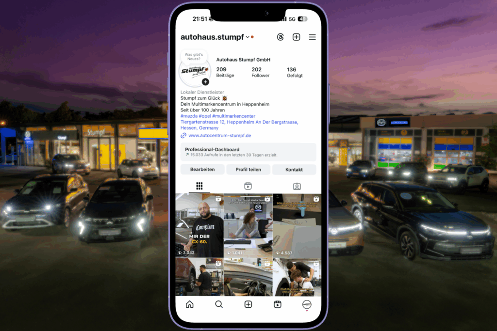 Neben Fahrzeugvorstellungen und humorvollen Reels liegt der Schwerpunkt auf einem modernen Markenauftritt, der Kunden emotional anspricht.